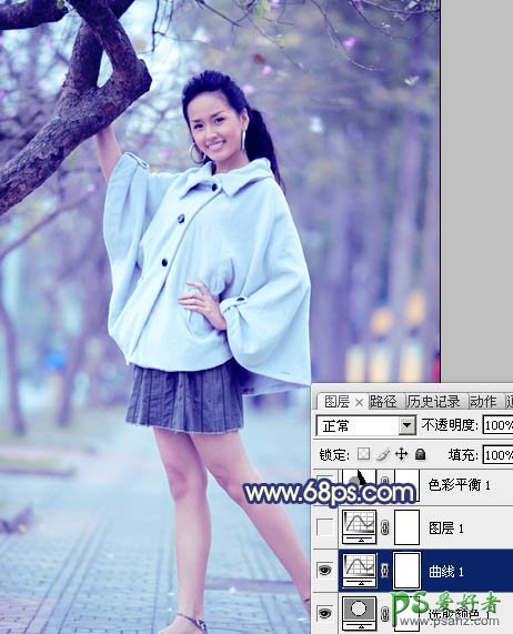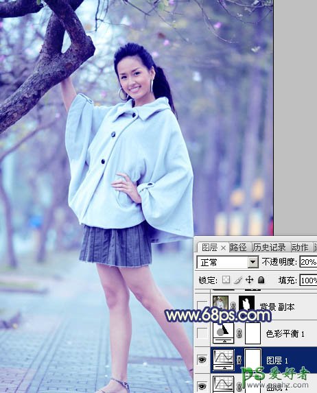 PS给街头可爱小女生艺术照调出蓝白非主流色彩
