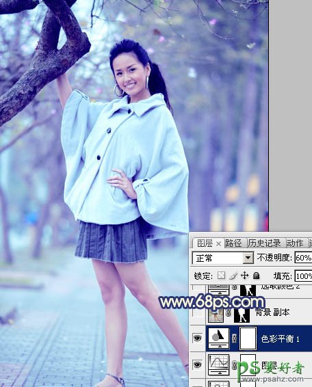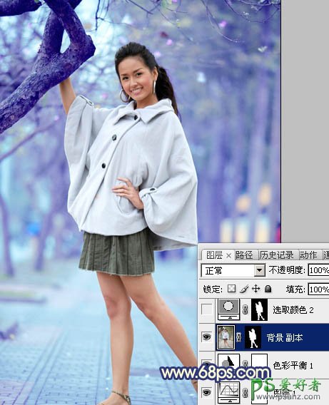 PS给街头可爱小女生艺术照调出蓝白非主流色彩