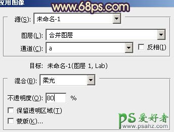 8、新建一个图层,盖印图层。选择菜单:图像 > 模式 > Lab颜色,选择不合拼。执行:图像 > 应用图像,参数设置如图16,效果如图17。确定后选择菜单:图像 > 模式 > RGB颜色,选择不合拼。
