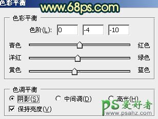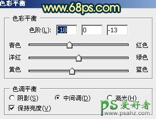 6、创建色彩平衡调整图层,对阴影、中间调、高光进行调整,参数设置如图18 - 20,效果如图21.这一步增加暗部及亮部的亮度。