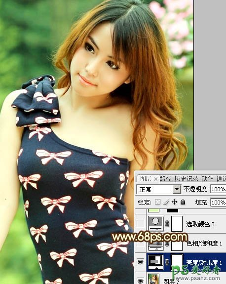 PS调色教程:给漂亮的公主写真照调出清爽的黄绿蜜糖色