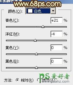 12、创建可选颜色调整图层,对白、黑色进行调整,参数设置如图29,30。效果如图31。这一步微调高光及背景部分的颜色。