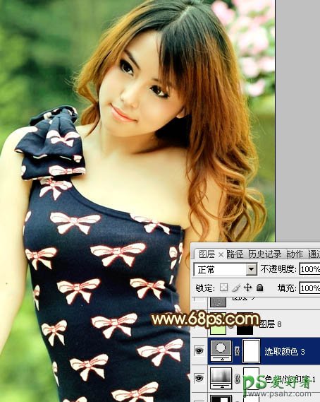 PS调色教程:给漂亮的公主写真照调出清爽的黄绿蜜糖色