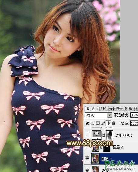 1、打开原图素材,按Ctrl + J 把背景图层复制一层,混合模式改为“滤色”,不透明度改为:30%,效果如下图。这一步增加图片的亮度。