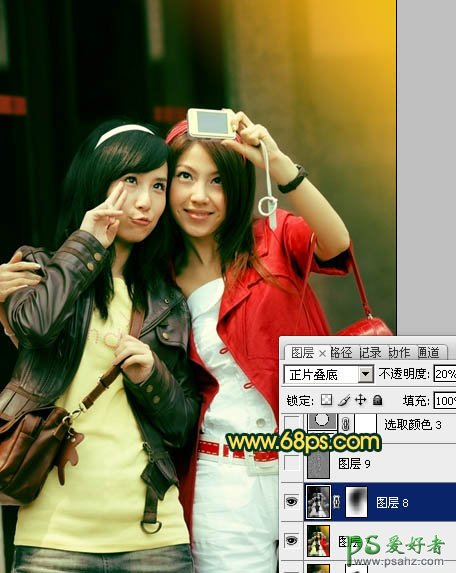 11、新建一个图层,盖印图层。按Ctrl + Shift + U 去色,混合模式改为“正片叠底”,不透明度改为:20%,加上图层蒙版,用黑色画笔把中间部分擦出来,效果如下图。