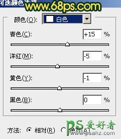 7、创建可选颜色调整图层,对红、白、黑色进行调整,参数设置如图15 - 17,效果如图18。这一步微调高光及暗部的颜色,加强图片的层次感。