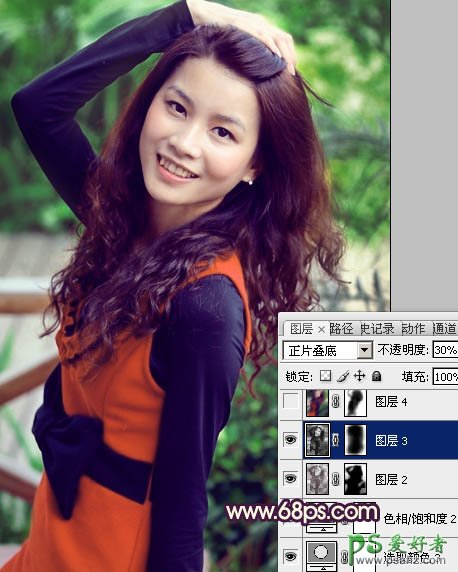 10、把背景图层复制一层,Ctrl + Shift + ] 置顶。按Ctrl + Shift + U 去色,按住Alt键添加图层蒙版,用白色画笔把边角部分擦出来。这一步增加图片的暗角。