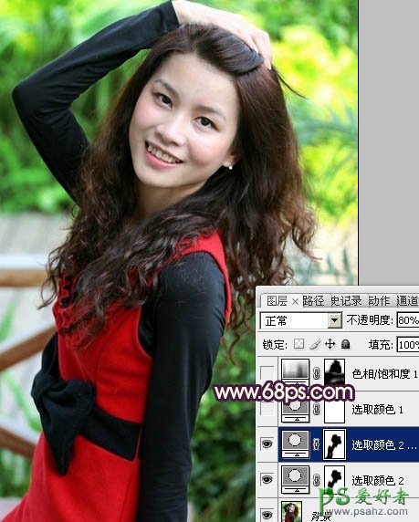 3、创建可选颜色调整图层,对红、黄、绿、中性色、黑色进行调整,参数设置如图5 - 9,效果如图10。这一步加深暗部颜色及改变人物衣服颜色。