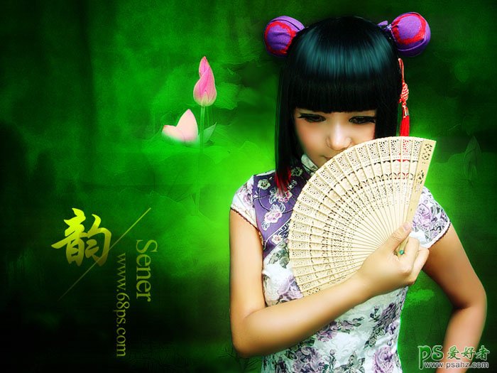 ,PS给古典害羞的少女调出好看的墨绿色,素材