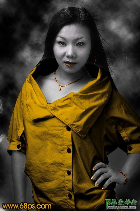 PS美女照片调色教程实例,photoshop调出暗调质感美女皮肤形象照片,本教程介绍黑白质感肤色的制作方法。大致过程:先把照片转成黑白效果,然后给图片加上一些纹理背景并适当调暗图片。最后就是人物高光部分的调节。