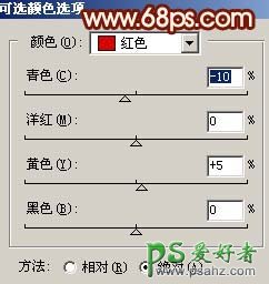 9、执行:图像 > 调整 > 可选颜色,对红色进行调整,参数设置如图14,效果如图15。