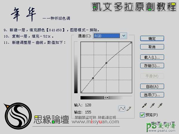 9、新建一层,填充颜色:#0d1d520,图层混合模式改为“排除”。 10、复制一层,填充改为:52%,其它不变。 11、创建曲线调整图层,参数设置如下图。