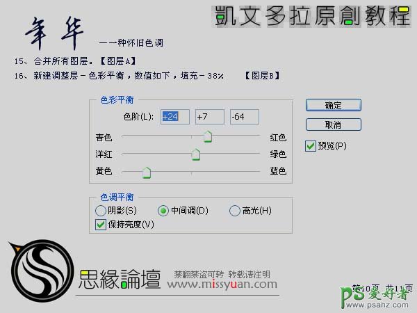 15、合并所有图层。 16、创建色彩平衡调整图层,参数设置如下图,确定后把填充值改为:38%。