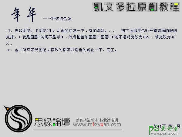 17、新建一个图层,按Ctrl + Alt + Shift + E 盖印图层,图层不透明度改为:46%,填充改为:48%。然后把下面的色彩平衡调整图层隐藏。 18、合并所有可见图层,适当的锐化一下,完成最终效果。