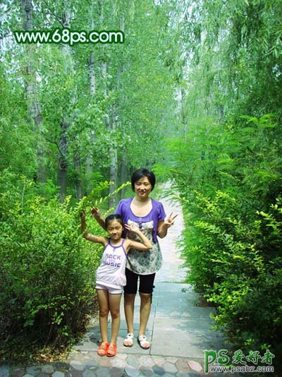photoshop给外景人物照调出梦幻的绿色调