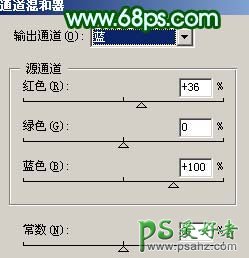 混合器调整图层,对蓝色进行调整,参数设置如图9,效果如图10。