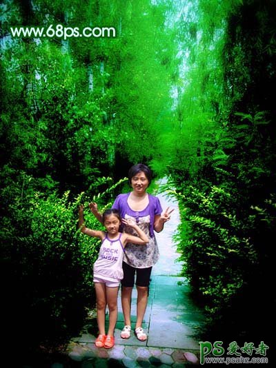 今天我们来和大家一起学习一篇PS照片调色教程实例,photoshop给外景人物照调出梦幻的绿色调,素材图片的背景部分树木比较浓密,比较适合制作梦幻效果。处理的时候先把复制的图片模糊处理,然后改变下图层混合模式,用蒙版控制好范围,效果就出来了
