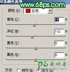 10、执行:图像 > 调整 > 可选颜色,参数设置如图17,效果如图18。
