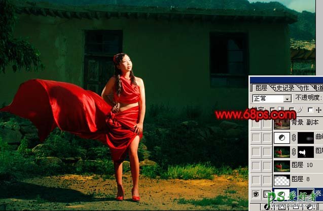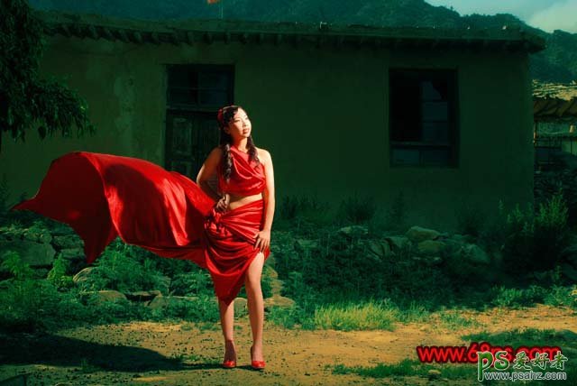 PS给漂亮的红裙美女照调出高对比度深红色