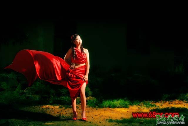 10、新建一个图层,盖印图层,执行:滤镜 > 模糊 > 高斯模糊,数值为5,确定后把图层混合模式改为“叠加”,加上图层蒙版用黑色画笔把人物部分擦出来,效果如下图。