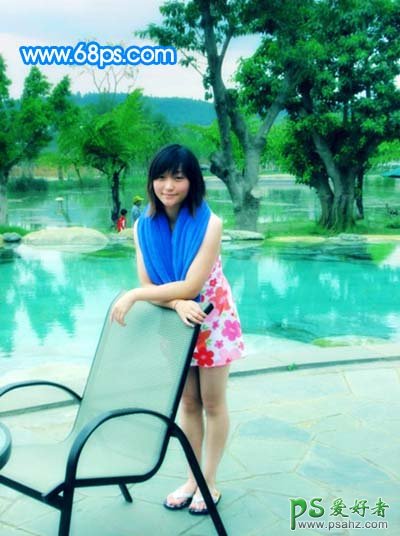 photoshop给泳池边的少女玉照调出淡雅的青绿色