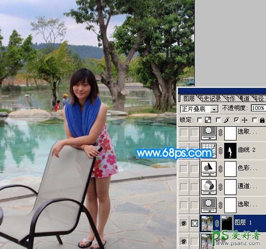 1、打开原图素材,按Ctrl + J 把背景图层复制一层,图层混合模式改为“正片叠底”,加上图层蒙版只保留天空部分,其它部分用黑色画笔擦掉,效果如下图。