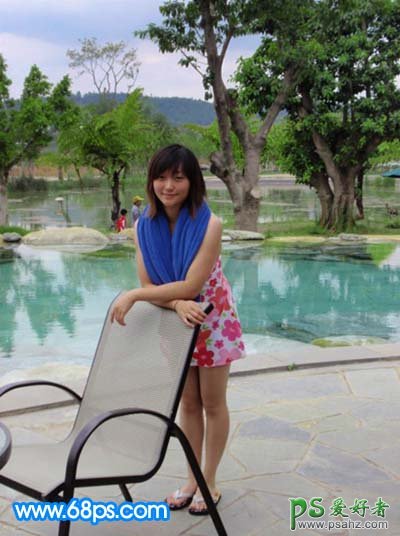 PS美女照片调色教程实例,photoshop给泳池边的少女玉照调出淡雅的青绿色,本教程的色调以青绿色为主,色调比较清淡;人物部分稍微用了一些淡红色,和背景衬托起来有种甜美时尚的味道。调色的时候完全可以按照自己的喜好去调。 最终效果 原图