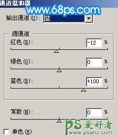 混合器调整图层,对蓝色进行调整,参数设置如图4,效果如图5。