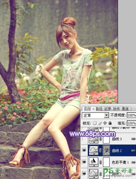 photoshop给泳池边的少女玉照调出淡雅的青绿色