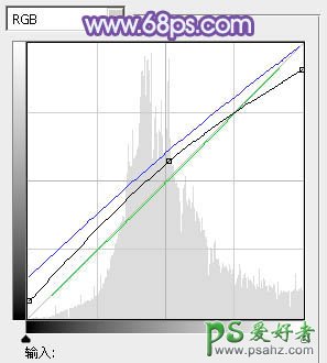 5、创建曲线调整图层,对RGB,蓝通道进行调整,参数设置如图19,效果如图20。这一步适当把高光颜色压暗,并给全图增加蓝色。