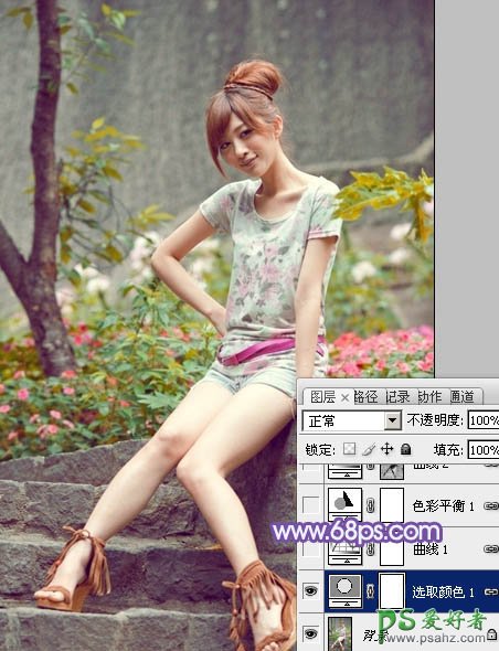 photoshop给泳池边的少女玉照调出淡雅的青绿色