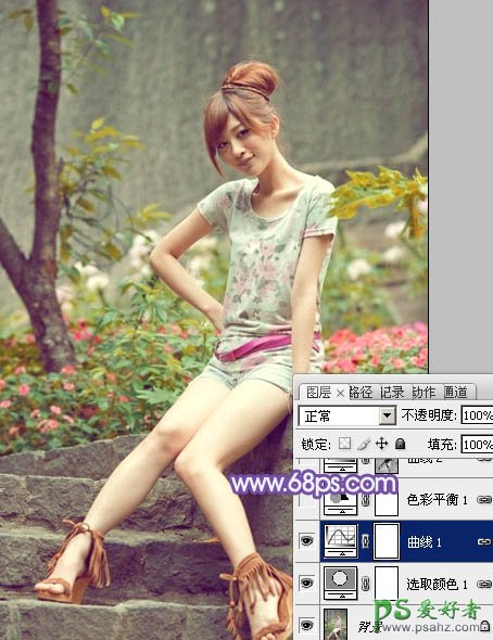 photoshop给泳池边的少女玉照调出淡雅的青绿色