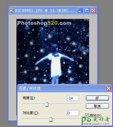 5、合并图层,执行图象-调整-亮度/对比度,设置如下。