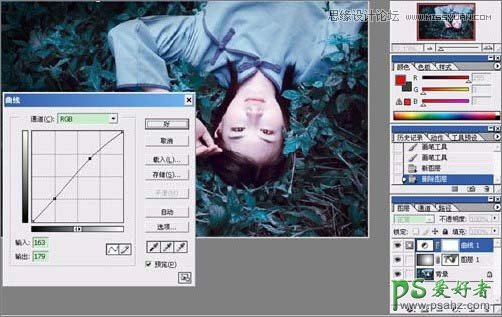 PS美女照片调色教程实例,photoshop调出青蓝色古装美女照片,本教程的效果有点类似暗夜精灵效果。不过作者的调色略有点不同。总体效果还是比较类似的。大致的制作过程:先开始调色,色调需要调得较暗一点的单色调,然后对人物部分单独进行处理。最