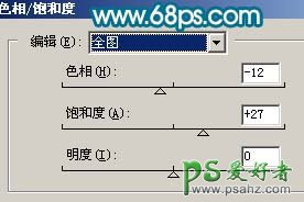2、创建色相/饱和度调整图层,参数设置如图3,效果如图4。人物部分会有点偏色,不过先不要去理他,后面会慢慢修复。