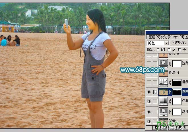3、新建一个图层,按Ctrl + Alt + Shift + E 盖印图层,图层混合模式改为“滤色”,加上图层蒙版,用黑色画笔把沙子部分擦出来,效果如下图。