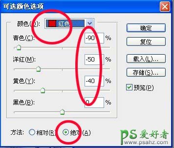 1、打开原照片,复制一层,混合模式:柔光,用60%画笔擦除人物。 2、创建可选颜色调整图层,对红色进行调整,参数设置如下图。