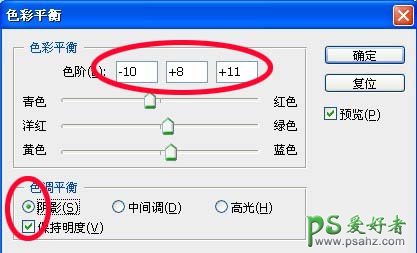 5、图层 > 新建调整图层 > 色彩平衡,详细设置如下: