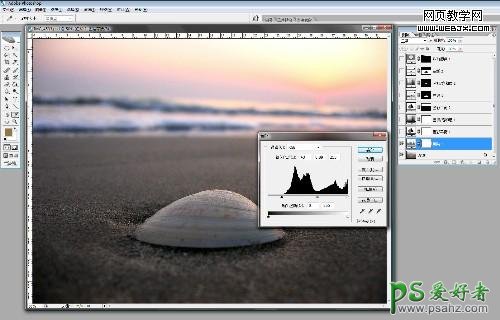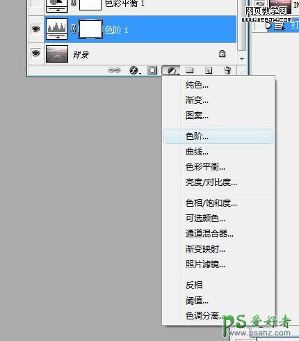 1、调整整个照片的色阶: 点击图层面板下方的调整图层面板,建立一个新的色阶调整图层(如图)。