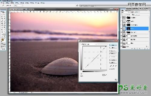 现在,我希望画面中的贝壳更加具有立体感和份量,于是,我建立了一个曲线调整图层,并建立一个只露出贝壳的蒙板,这样,我的对比度调整将只限于贝壳部分(如图)。