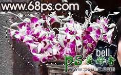 6、用套索工具选区人物左边的鲜花部分,按Ctrl + U 调整色相/饱和度,选择:洋红,色相-125。效果如下图。