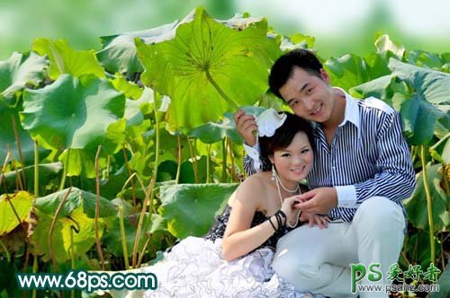 ps给浪漫的翠绿色池景婚片情侣调出唯美色