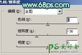 9、创建色相/饱和度调整图层,参数设置如图14,效果如图15。