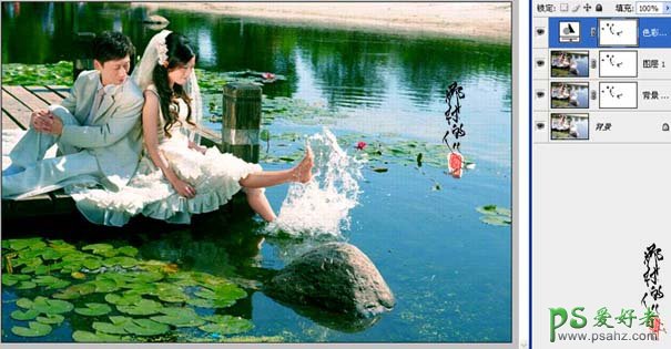 ps给浪漫的翠绿色池景婚片情侣调出唯美色