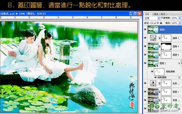 8、新建一个图层,盖印图层,适当进行一点锐化和对比处理。