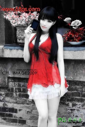 6、新建一个图层,盖印图层,用加深工具适当把人物眼睛周围涂暗一点。新建一个图层给人物加上一点口红效果,如下图。