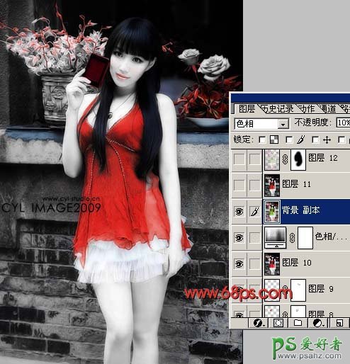 9、把背景图层复制一层,按Ctrl + Shift + ] 置顶,图层混合模式改为“色相”,不透明度改为:10%,效果如下图。