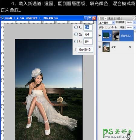 4、回到图层面板,按Ctrl + ALt + 4 调出高光选区,新建一个图层填充颜色:#0e4040,图层混合模式改为“正片叠底”。