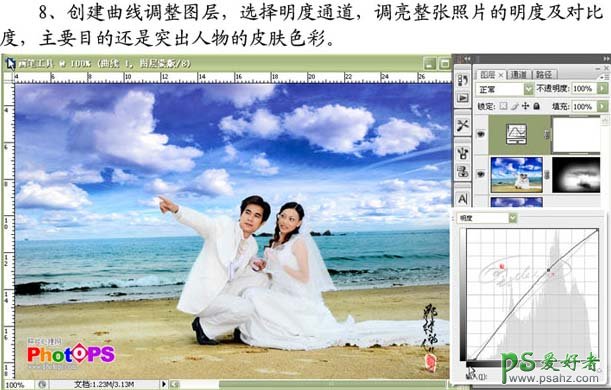 8、创建曲线调整图层,选择明度通道,天亮整张照片的明度及对比度,主要目的还是突出人物的皮肤色彩。