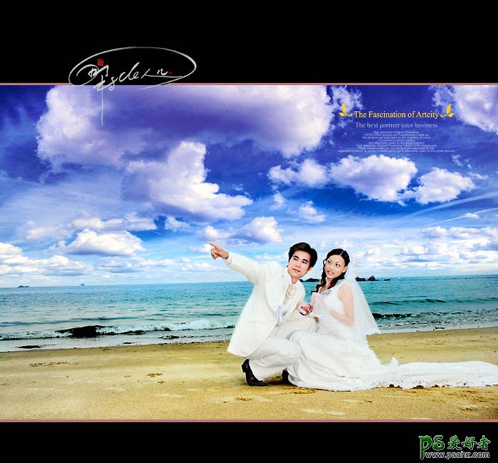,photoshop给海景婚片男女调出清晰效果,高对比的色调加强了